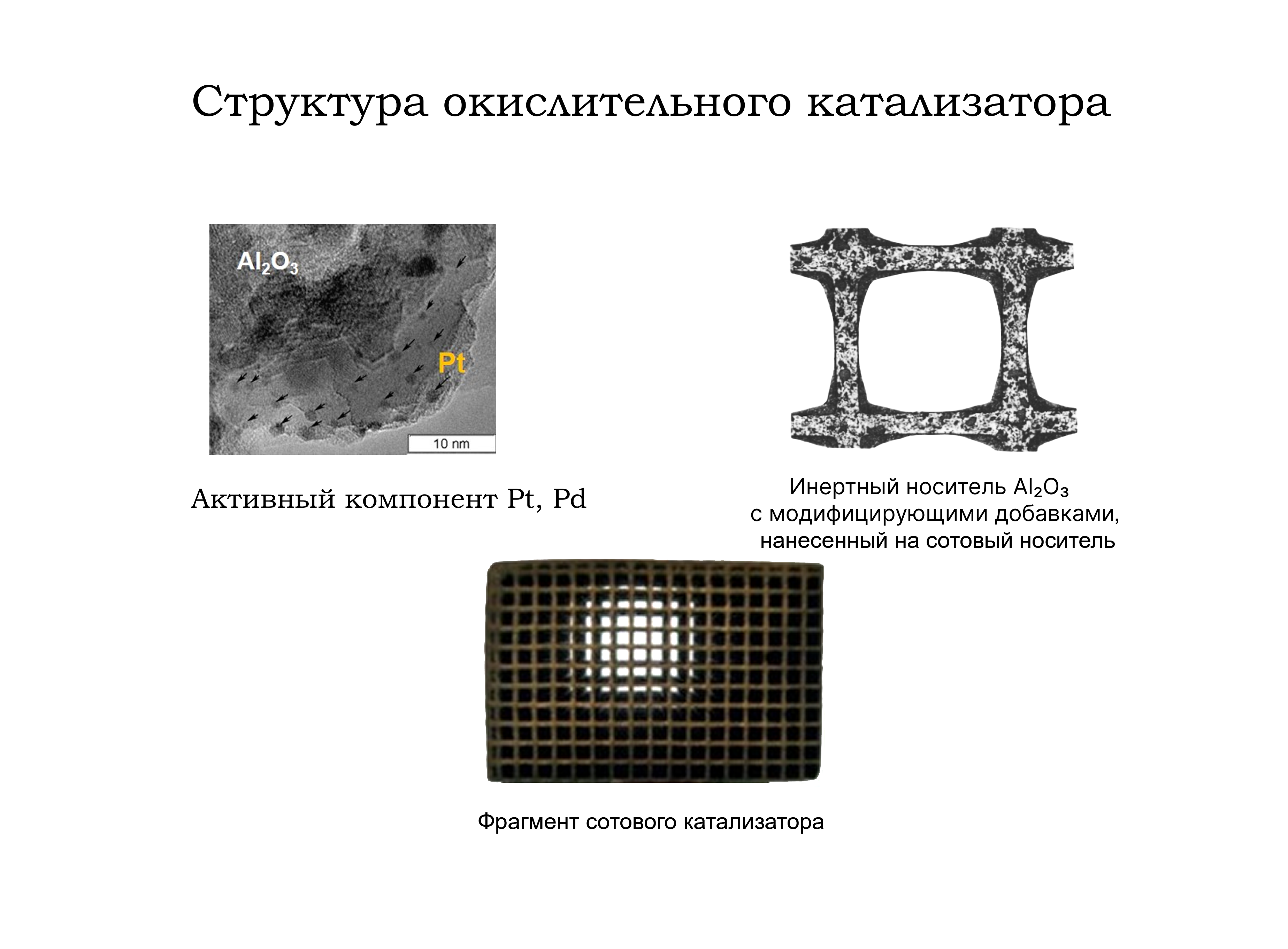 Ученые Института катализа СО РАН работают над усилением синергетического эффекта в каталитической активности платино-палладиевых систем в комплексе с оксидом марганца, нанесенных на алюмооксидное покрытие керамических блоков. Они смогли снизить содержание платины и палладия в катализаторе до 0.17 и 0.17–0.35 граммов на литр, соответственно, при 5-процентном содержании оксида марганца в алюмооксидном покрытии.