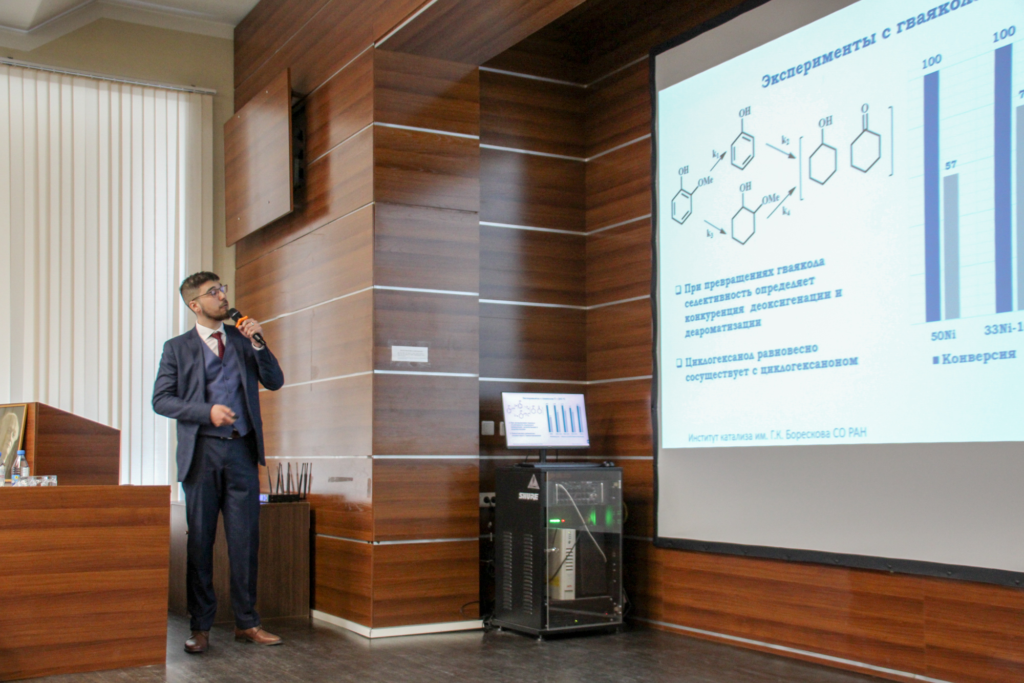 В Институте катализа СО РАН прошел ежегодный мемориальный семинар имени его основателя, академика Георгия Константиновича Борескова. В рамках семинара был проведен традиционный конкурс именных аспирантских стипендий, участники которого выступили с работами по актуальным темам — фотокаталитическим системам для очистки воды, решениям на основе серебра для каталитического окисления и переработке лигнина как альтернативы углеводородам.