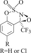 The oxaziridines shown catalyze the regioselective hydroxylation of unactivated C-H bonds, according to a new study (J. Am. Chem. Soc. 2005, 127, 15391). Alkane hydroxylation remains a formidable challenge in reaction design, write Justin Du Bois and Benjamin H. Brodsky of Stanford University. Certain oxaziridines are known to convert alkanes to alcohols stoichiometrically. Brodsky and Du Bois now report novel N-alkoxysulfonyl oxaziridines that can be used to perform such hydroxylations catalytically. The oxaziridines were generated in situ by treating the corresponding imine precursors with hydrogen peroxide and a suitable cocatalyst. The researchers find that the oxaziridine system performs regioselective and stereospecific oxidations of a variety of aliphatic substrates, including alkenes and alcohols. Guided by computational modeling, they are now refining the catalyst to improve turnover rate and substrate scope.