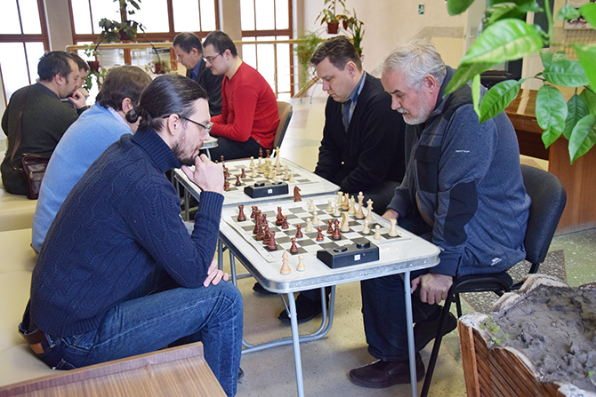 Шахматный турнир проходил по «круговой» системе блиц-партий на третьем этаже главного корпуса Института. Семь побед и одна ничья в нелегких интеллектуальных баталиях привели на вершину пьедестала Дмитрия Соколова, который, напомним, оказался лучшим и в настольном теннисе. «Серебряные» медали получают сразу три участника: Антон Коскин, Евгений Грибов, Сергей Семиколенов. Каждый из них победил пятерых соперников. Заведующий лабораторией приготовления катализаторов Анатолий Владимирович Романенко занимает третье место.