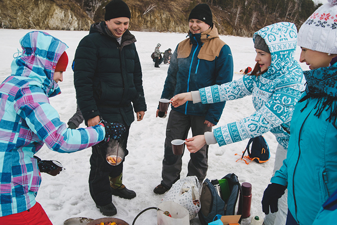 Проведенный на рыбалке день оказался насыщенным на впечатления, и даже капризная погода не смогла испортить настроение рыболовов, которое подогревалось вкусными пирожками и горячим глинтвейном.