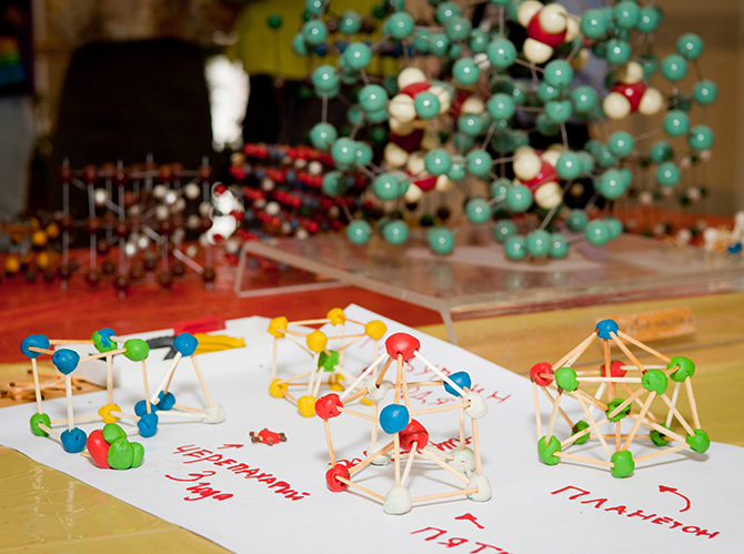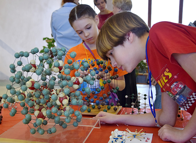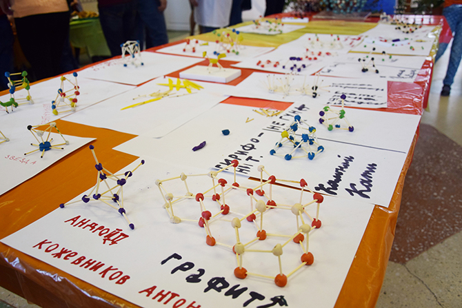 Участникам младше девяти лет было предложено создать свои причудливые кристаллические структуры из пластилина и деревянных палочек и дать им названия. Теперь из этих уникальных работ составлена выставочная экспозиция в малом конференц-зале Института. В коллекции представлены работы «Негундин», «Графитя», «Андроид» и другие замечательные экспонаты.