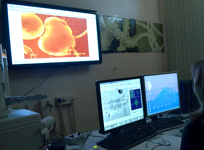 Несколько групп ребят старше десяти лет отправились на обзорную экскурсию по Институту по разным маршрутам. Экскурсия включала в себя знакомство с растровой электронной микроскопией, где детям показали снимок увеличенного в тысячи раз позолоченного муравья.