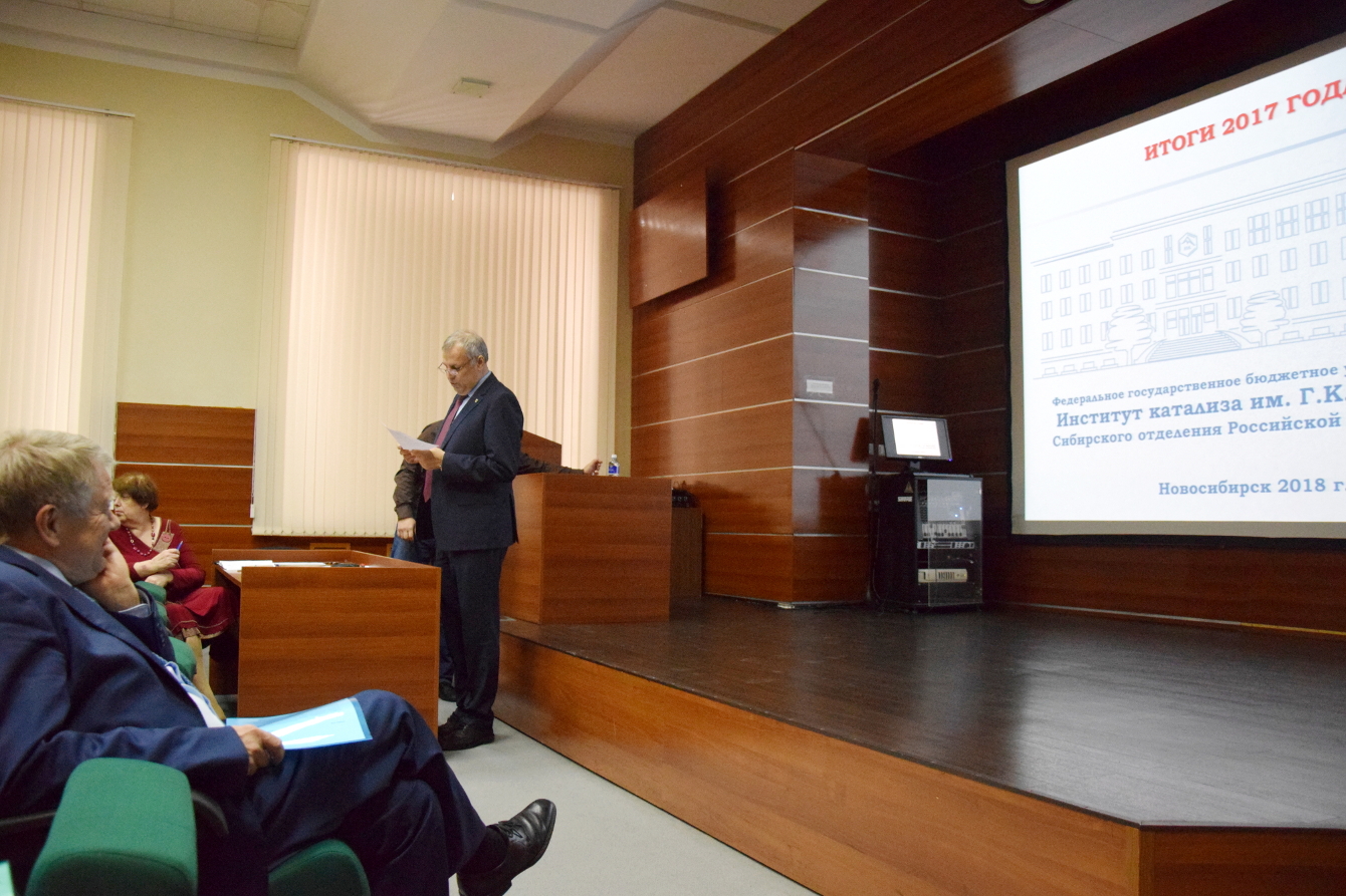 В пятницу 6 апреля на заседании Ученого совета ИК СО РАН прозвучал доклад директора Института академика РАН Валерия Ивановича Бухтиярова по итогам 2017 года.