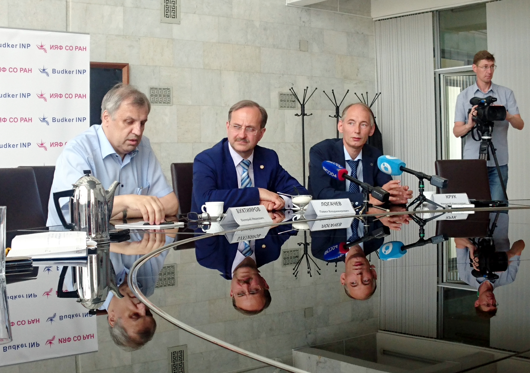 В пресс-конференции приняли участие: директор Института катализа СО РАН, академик РАН Валерий Иванович Бухтияров, директор ИЯФ СО РАН, академик РАН Павел Владимирович Логачев, и директор Института геологии и минералогии СО РАН (ИГМ СО РАН), доктор геолого-минералогических наук Николай Николаевич Крук.